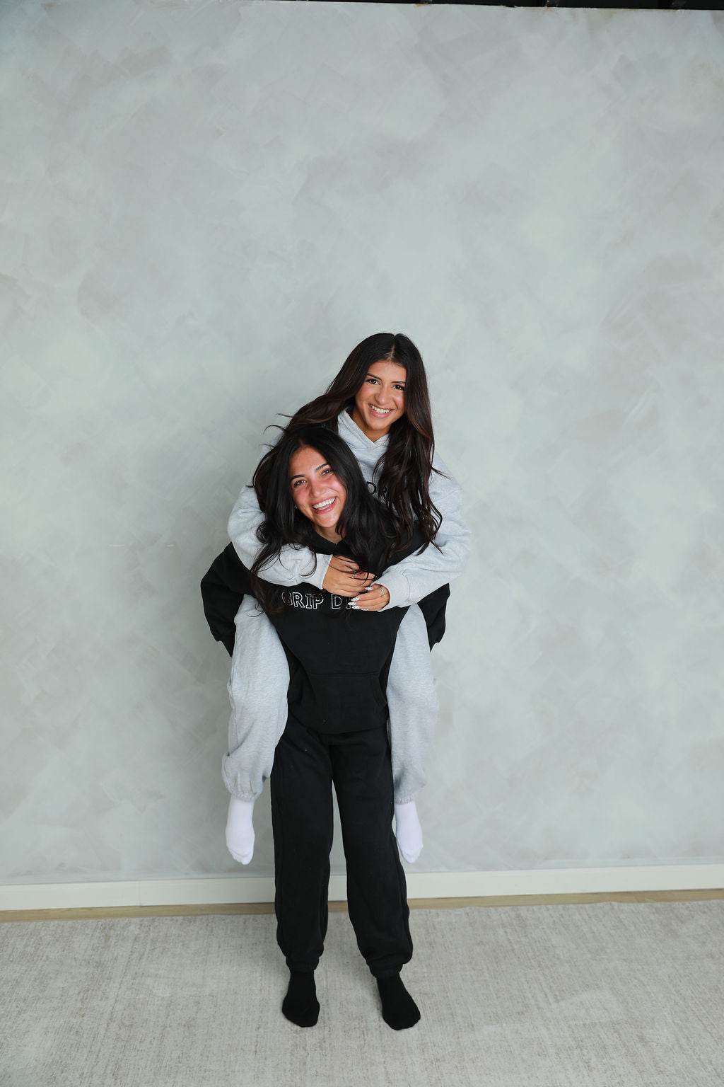 We are two best friends who love pilates and created grip drip with all of you in mind. We're so happy you are here and we can't wait to see you in your grips.